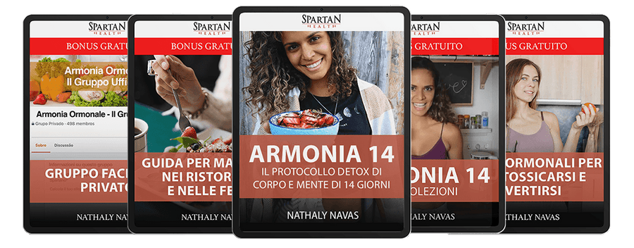 Con l’iscrizione ad Armonia 14, riceverai un protocollo completo di disintossicazione della durata di 14 giorni, scaricabile in formato e-book, che comprende tutte le informazioni necessarie sull’alimentazione, l’esercizio fisico e le terapie cognitive per eliminare le tossine dal corpo, riequilibrare il microbiota e godere di una perdita di peso senza sforzo, di una digestione ottimizzata, di un aumento dei livelli di energia, di chiarezza mentale e di concentrazione, di una pelle più giovane, di capelli più sani, ecc.