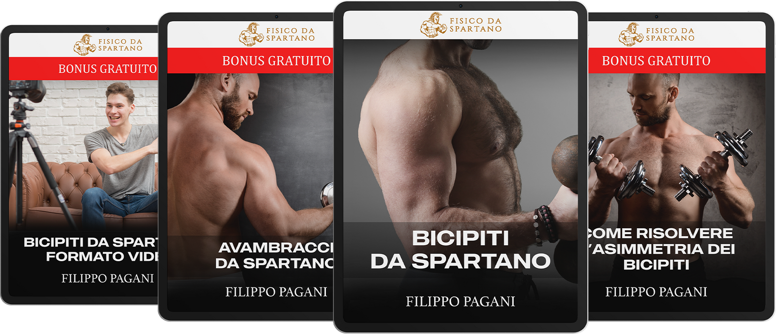 Oltre al programma in formato pdf, goditi anche Bicipiti da Spartano raccontato e spiegato da Filippo - con qualche extra particolare e informazione specifica su come meglio allenare i tuoi bicipiti per massimizzare la loro crescita.