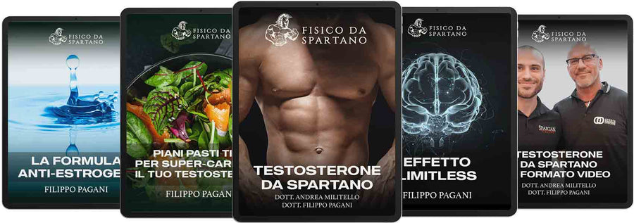 All’interno di Testosterone da Spartano trovi schede d’allenamento, modelli di piani alimentari, consigli di integrazione e tante altre strategie per ridurre gli effetti nefasti degli interferenti endocrini e massimizzare le strategie per incrementare il testosterone.